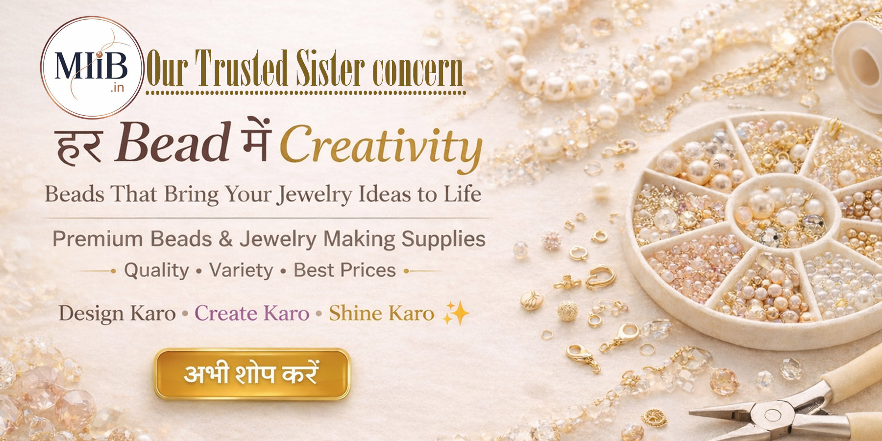Made in India Beads ( www.madeinindiabeads.com ) The Company is headed by Mr. Hasmukh Patel , heaving very rich experience in production and exports of beads and Findings products. He visited many countries several times and has very good understanding of taste and requirements in various countries. We have complete control over the quality, colors, and the sizes of beads and our prices are the cheapest in the International market. Recently We have open Beads and Jewelry Findings Shop for Indian customers. Our firm has got the reputation for its finest quality products in India and we dare to challenge that no one has such a fine quality like ours in this country.
