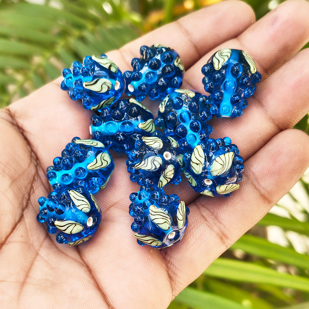 Color: Deep Blue' Buy 2 pcs Handmade Raspberry Lampwork Glass Beads, approx. 18x20mm. Unique artisan beads perfect for DIY jewelry making, earrings, pendants & craft designs."