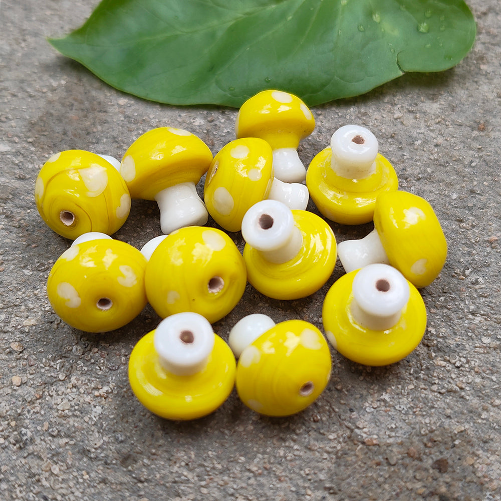 Bring a little bit of magic to your next project with our 6 Pieces Pack of Mushroom Lampwork Glass Beads. Each bead is a tiny work of art, meticulously handcrafted by skilled artisans using a process called lampworking. This technique involves melting glass with a torch and shaping it into these delightful mushroom forms.