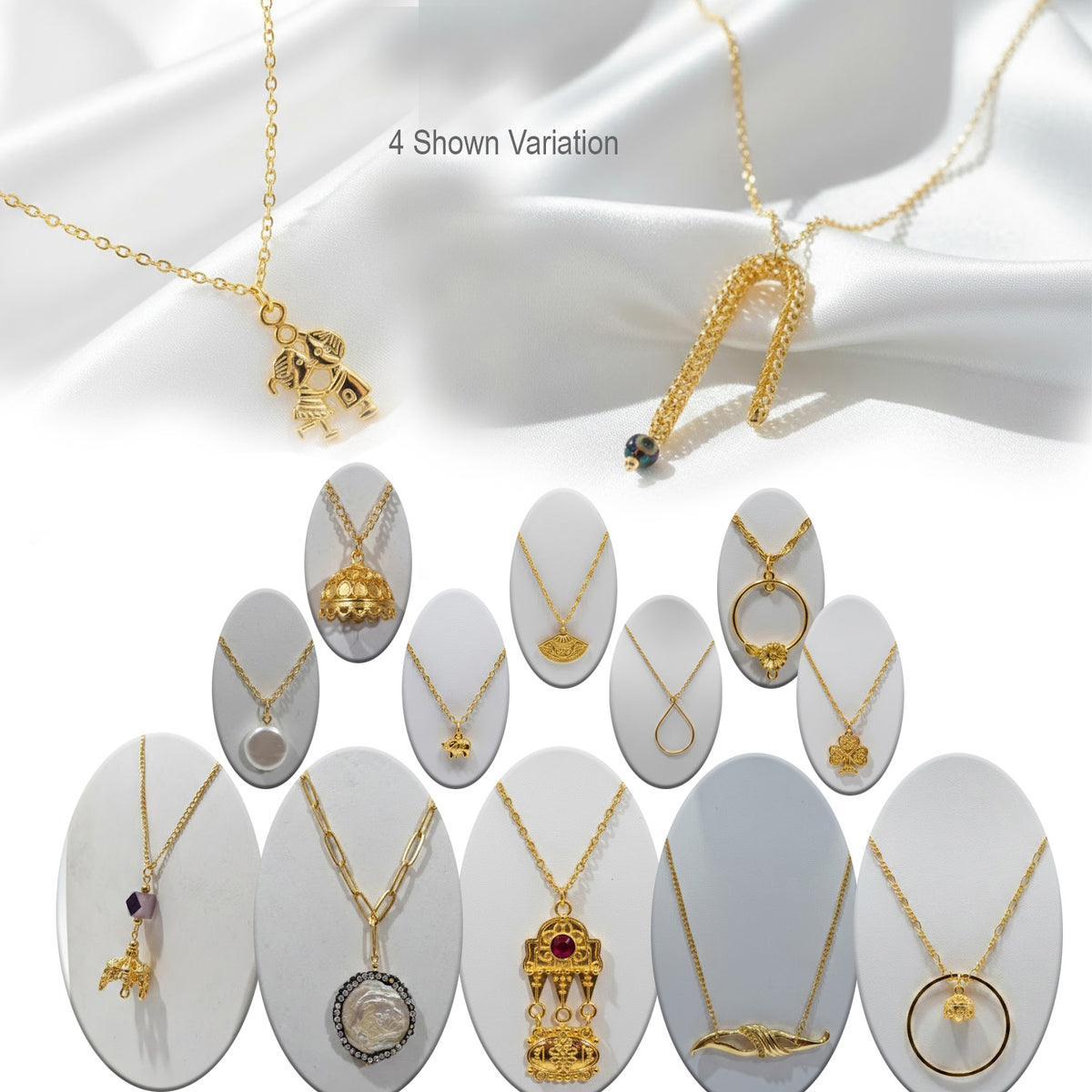 Upgrade your jewelry collection with this 10 Pcs Random Mix Wholesale Lot Gold Plated Chain with Pendant Set. This beautiful assortment features trendy, minimalist, and elegant pendant designs perfect for daily wear, gifting, and resale purpose due to unbeatable price ! Each lot includes a random mix of stylish gold-plated necklaces, including coin pendants, abstract shapes, leaf designs, cross charms, geometric styles, and modern minimal pieces. Designed to complement both casual and formal outfits, these lightweight necklaces add a subtle yet classy charm to any look.