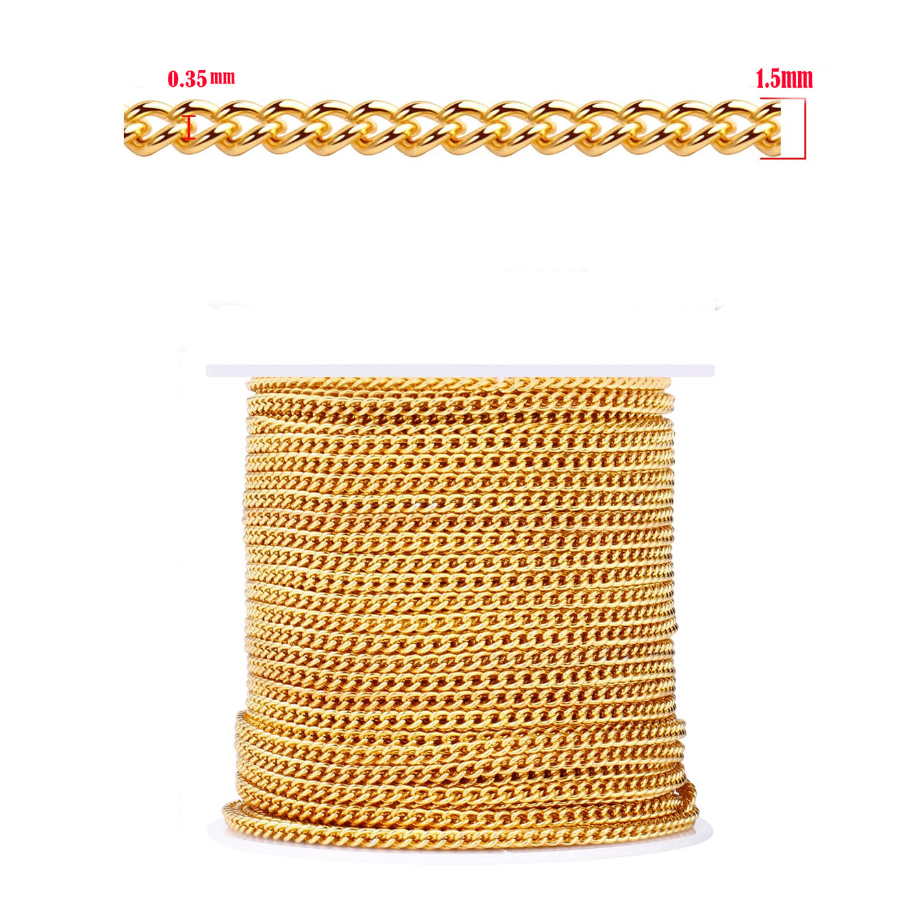 1.5mm Thin Curb Chain – 2 Meters | Iron Base with Durable Plating