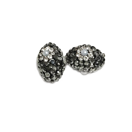 Oval Pave Beads featuring premium black stone inlay, perfect for jewelry making. These sparkling beads add a luxurious touch to bracelets, necklaces, earrings, and DIY craft projects. Ideal for both professional designers and hobby crafters.