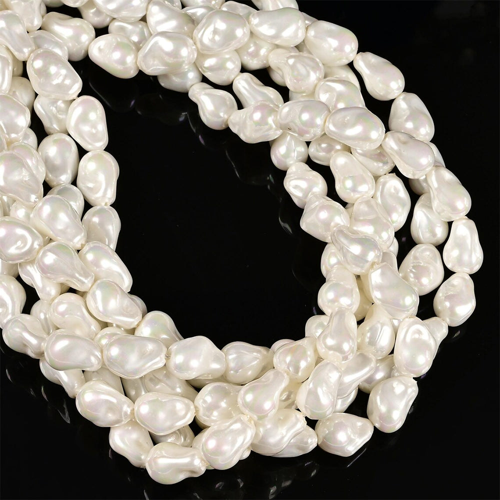 Off-White Baroque Shell Pearls. One string, approx. 18 unique pieces (20x15mm). Perfect for distinctive, elegant jewelry designs. Embrace their natural, irregular beauty!