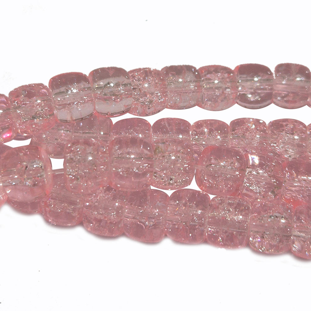 Crackle Glass Beads Drum Shape size 8mm Sold Per Full line about 132~133 beads, Pink color