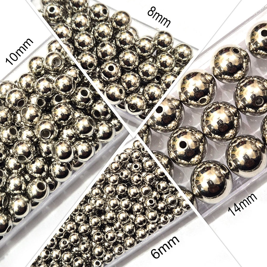 6mm, 8mm, 10mm, 14mm round ccb acrylic metallic beads round, each 50 grams pkg.