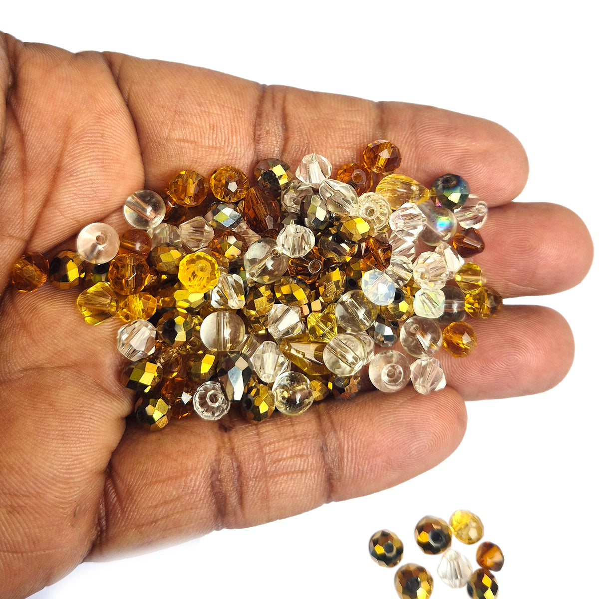 50 Grams Pkg. Crystal Glass Beads 4–7mm | Random Mixed Shapes & Sizes | Premium Shiny Beads for Jewelry Making, Colour Brown and White Tone