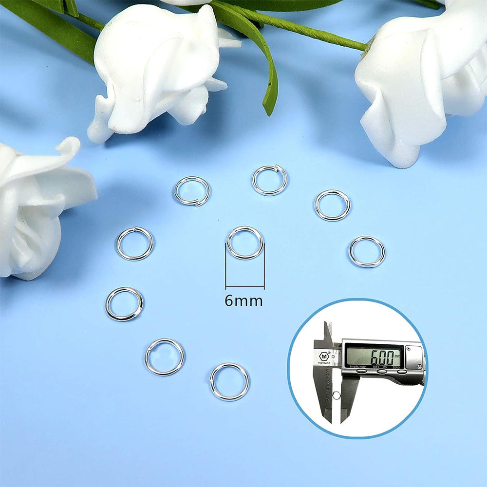 100pcs 6mm jump rings made from strong brass material and coated with premium 925 silver plating. Their durable plating ensures long-lasting shine and resistance to tarnish, making them perfect for DIY jewelry making, crafting, and repairs. The 5mm size is ideal for connecting chains, clasps, charms, and pendants, offering a secure and professional finish for both beginners and experienced jewelry designers.