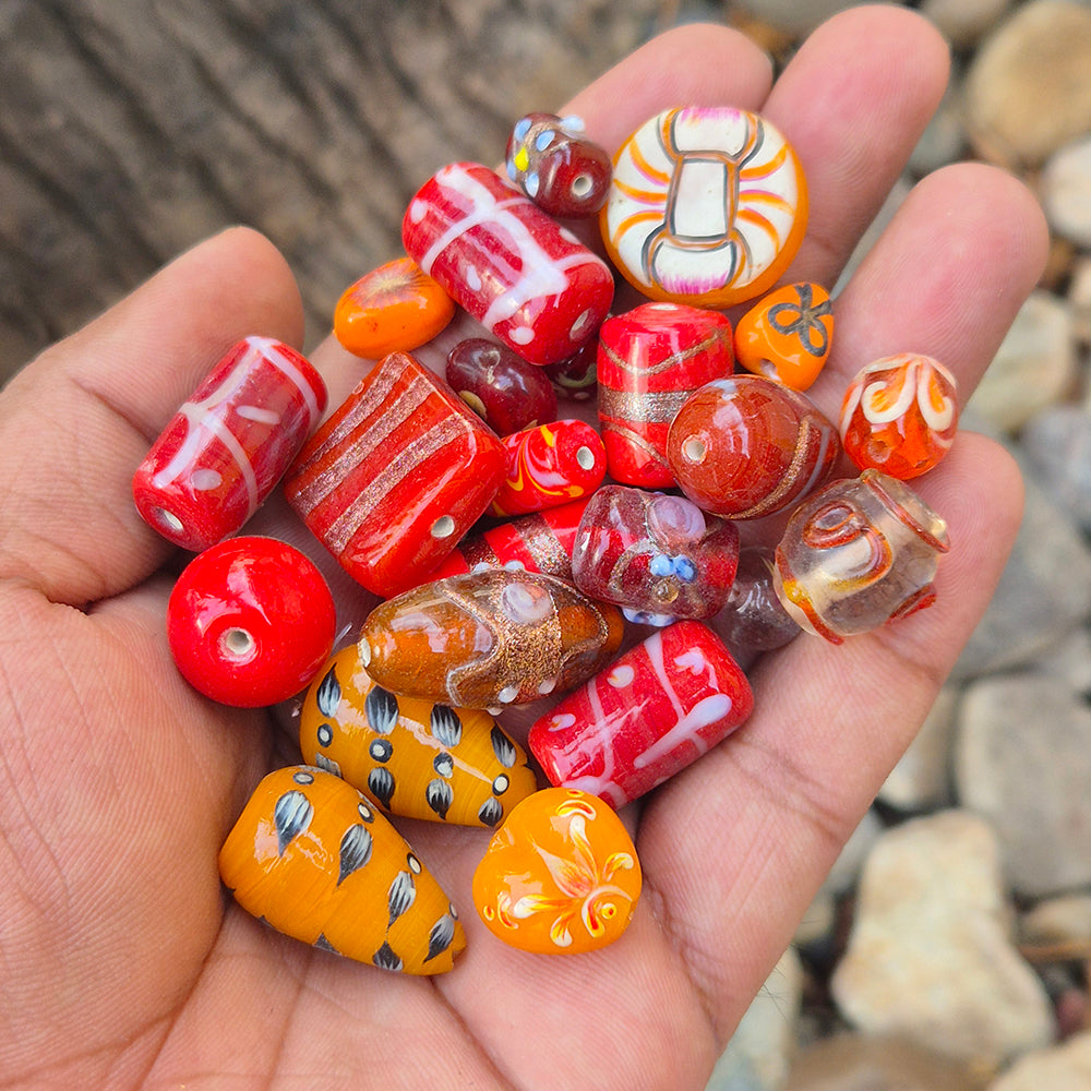 200 GRAMS PACK' RED TONE FANCY LAMPWORK BEAD MIX