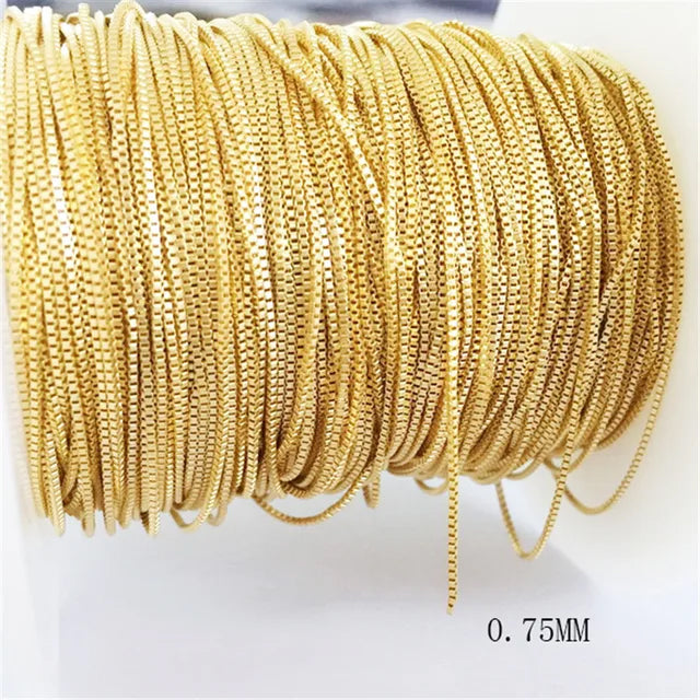 Craft refined, minimalist jewelry with this Very Thin Gold Plated Box Chain, sized approximately 0.75mm. Featuring a sleek box link design and a smooth, high-shine gold finish, this delicate chain is perfect for dainty pendants, layering necklaces, or elegant custom pieces. Lightweight yet durable, it adds a subtle luxury to any creation.